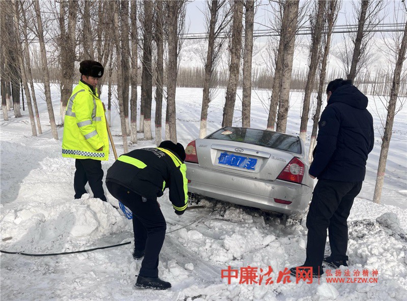 路面结冰轿车侧滑被困 新源执法人员火速驰援解困