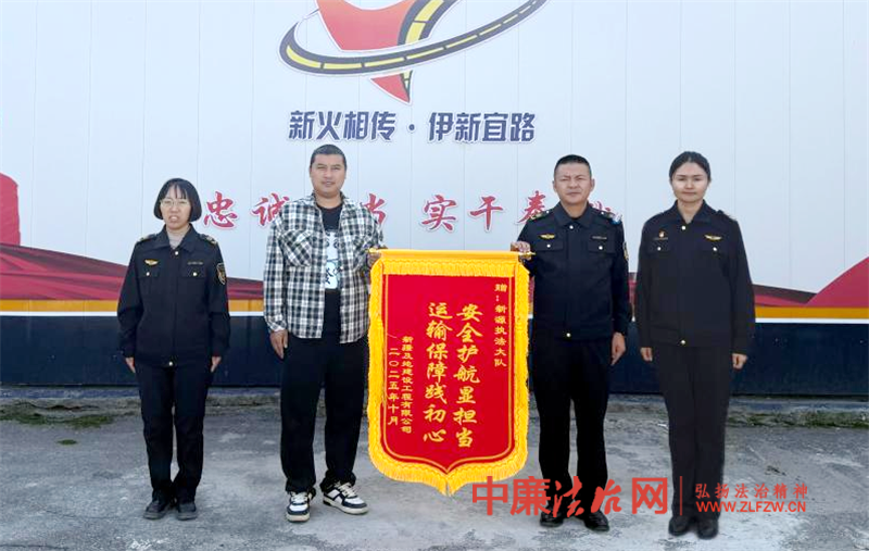 近日,新疆伊犁新源执法大队收到一份特殊的“感谢礼”——新疆及地建设工程有限公司代表将一面绣有“安全护航显担当,运输保障践初心”的锦旗郑重递交到执法人员手中,以此表达对大队工作的认可与感谢。