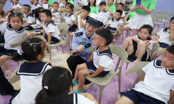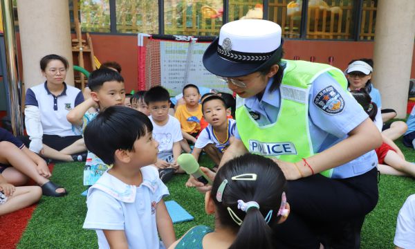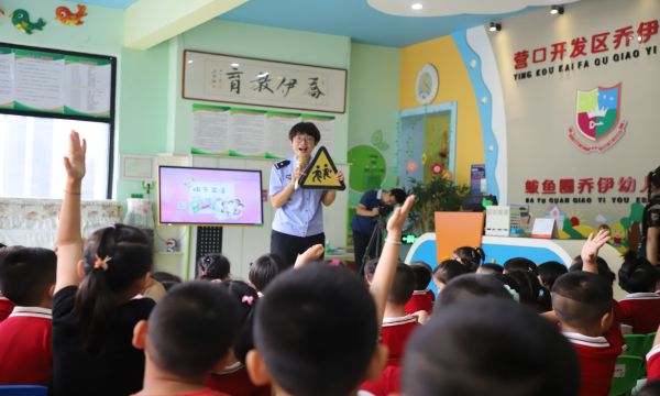 “红灯停、绿灯行、黄灯亮时等一等。这是直行加速手势,小朋友跟着一起做”,在刘娜的带领下,一群小朋友争先恐后地模仿着,一堂生动有趣的交通安全主题教育正在幼儿园开展。