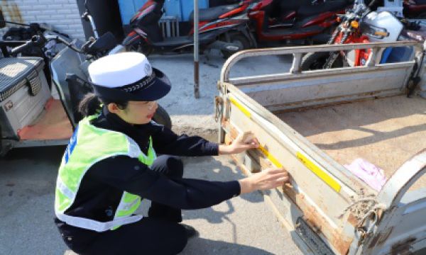 在辖区各村委会门前,刘娜将《致农民朋友的一封信》发放到村民手中,并结合交通事故案例,详细讲解农用三轮车设计原理及违法载人的危害性、酒驾醉驾违法后果、“一盔一带”的重要性等。面前的展板即为讲板,手中的宣传彩页就是教材,流动的“交通安全课堂”在人群中随时开讲,吸引过往村民参与进来,不断扩大宣传教育受众面,增强群众交通安全意识。她为夜间骑车出行职工和村民的电动车贴上反光标识,增强电动车夜晚行驶辨识度,提高出行“安全系数”。