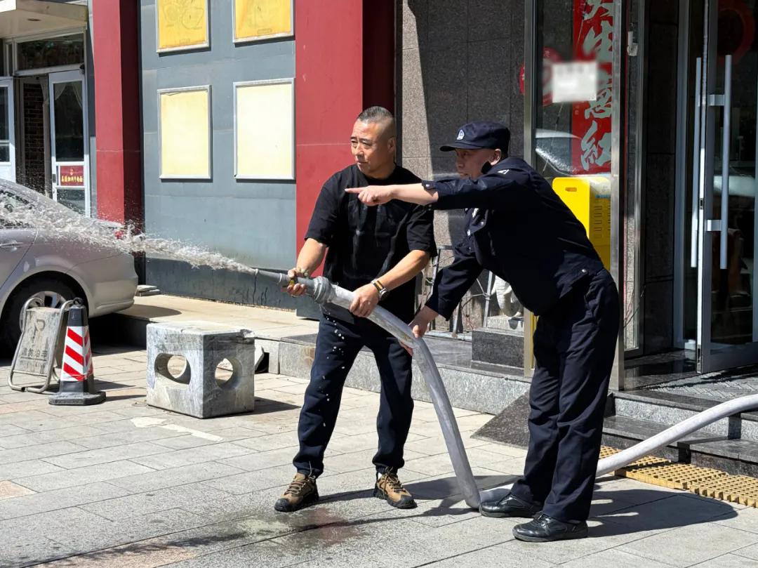 应急演练 5月4日上午,铁西分局霁虹派出所辖区一家餐馆门前突发“火情”。“水枪对准火源!”在民警指导下,工作人员熟练地对准火苗喷射,动作干脆利落。