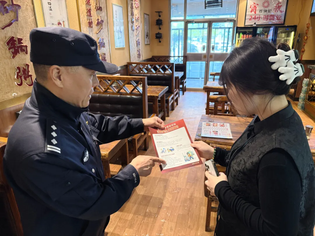 工作中,民警辅警化身“安全宣传员”,走进辖区“九小场所”,用“唠家常”的方式,结合典型案例向商铺业主讲解消防安全知识。从私拉乱接电线的危险,到违规使用大功率电器的隐患,从损坏消火栓的后果,到日常安全防范的要点,安防知识如春风化雨,流入商铺业主的心田。
