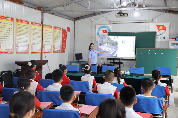 “过马路要先看左,再看右,确认没车才能走!”9月1日上午,辖区铁东小学四年级教室里传来阵阵互动声,交管大队宣教民警正拿着交通安全宣传单,用生动的案例为学生们讲解出行安全知识,为同学们上好“开学第一课”。