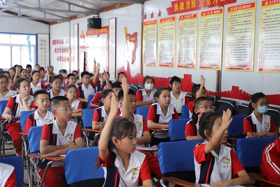 “未满多少岁不能骑自行车上路”?“我知道,我知道。”……学生们纷纷举手抢答,答对的同学还收到了印有交通安全标语的卡通书签。
