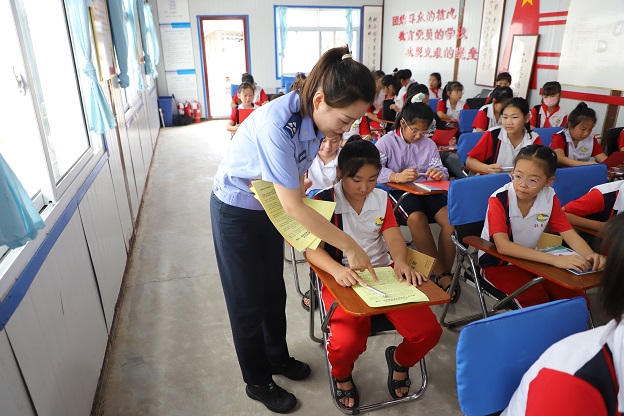 一张张图文并茂的宣传资料,用漫画形式呈现交通规则,方便学生理解记忆。“我要把折页带回家给爸爸妈妈看,还要告诉爷爷奶奶骑车一定要戴头盔!”学生李丽拿着宣传资料,认真地对民警说。